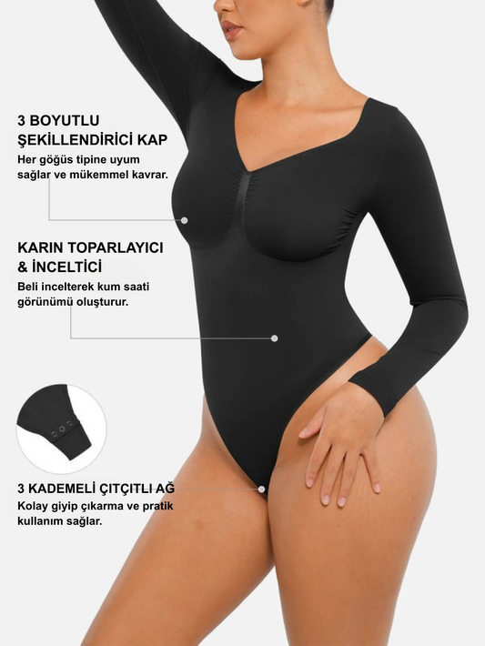 Beslauren Dikişsiz Uzun Kollu Karın Kontrollü Tanga Bodysuit