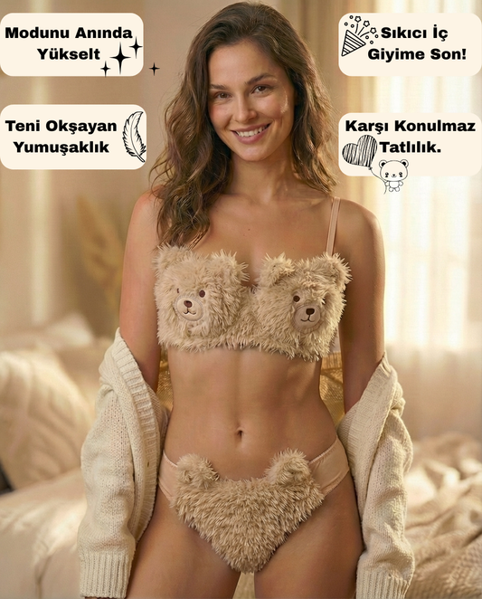 Kadın Sonbahar Ve Kışlık Peluş Ayı İç Çamaşırı Takımı